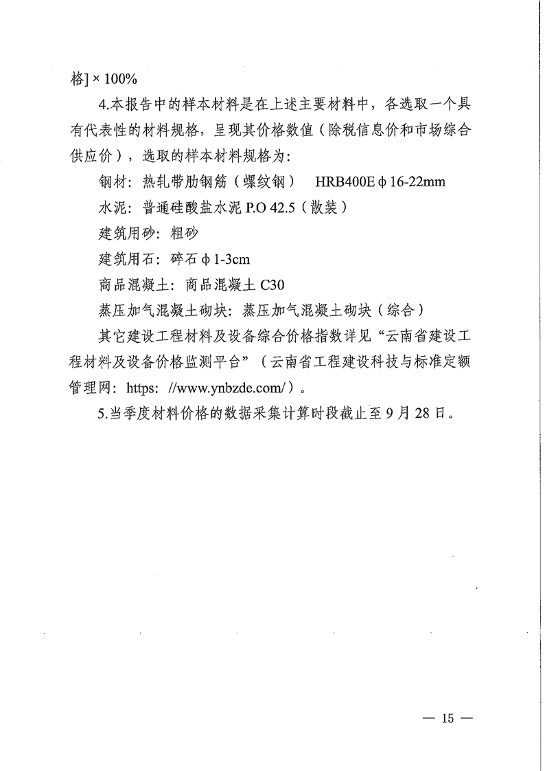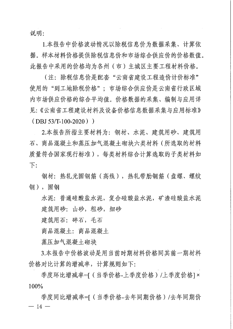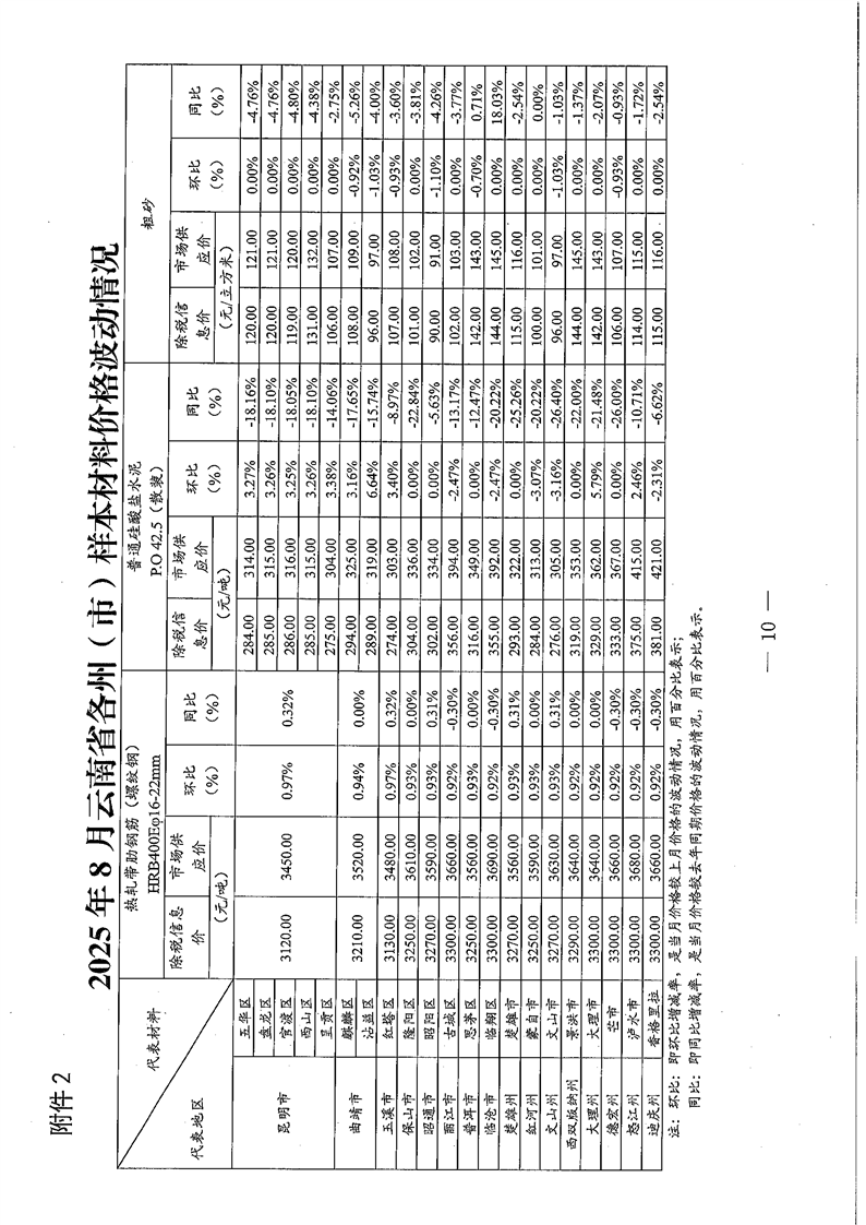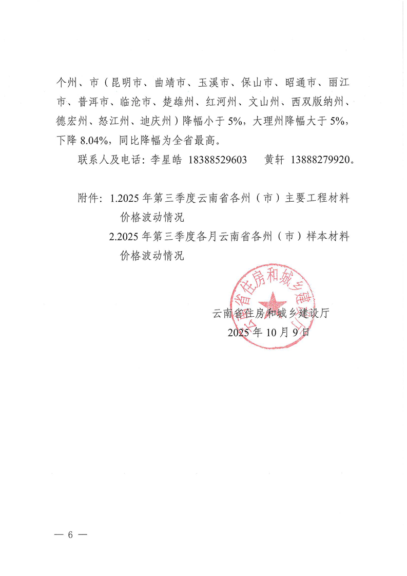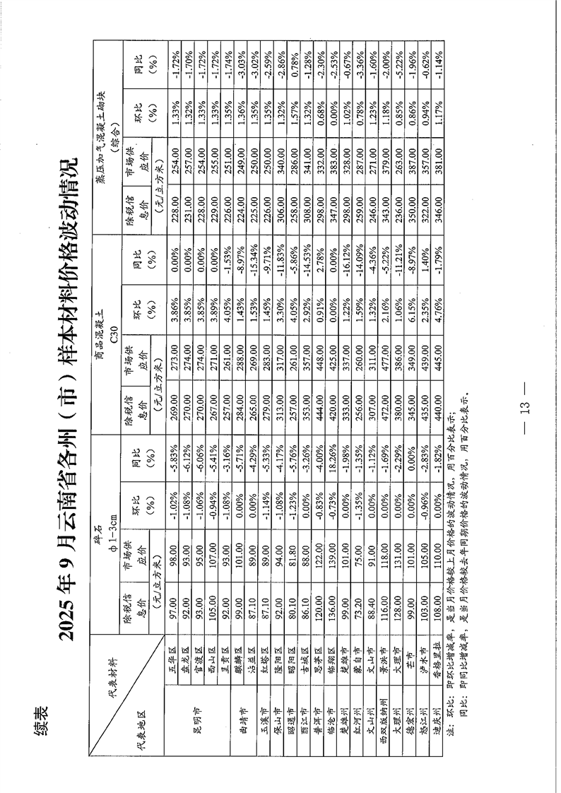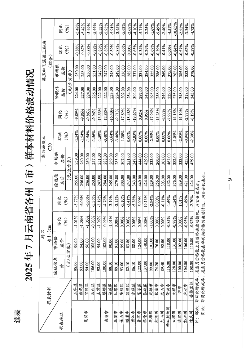 云南省住房和城乡建设厅关于2025年第三季度云南省主要工程材料价格波动情况的通报
