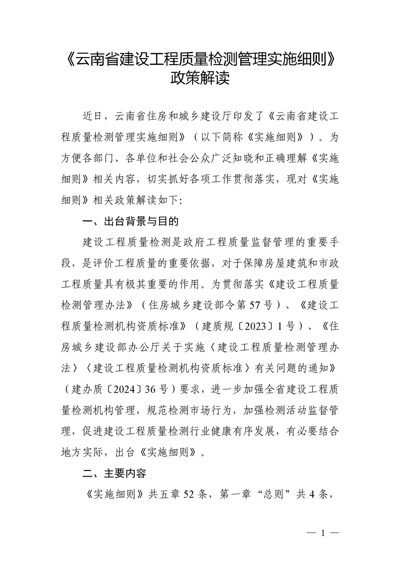 《云南省建设工程质量检测管理实施细则》政策解读
